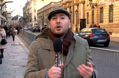Le Guide de la révolution lybienne est annoncé pour 11h45. Mais déjà, la visite au Palais Bourbon soulève comme un souffle de scandale. Bien sûr, il n’est invité « qu’à » l’hôtel de Lassay, lieu des locaux de la Présidence de l’Assemblée, et pas dans le bâtiment principal, qui abrite (entre autres) l’Hémicycle. De la salle des Quatre Colonnes, avec nos confrères, nous guettons, enfermés à double tour en dedans, les préparatifs au travers de la vitre… Des consignes de sécurité hors du commun sont en effet ce jour-là de rigueur…